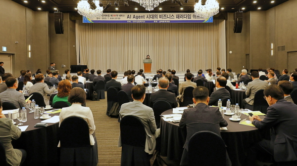 (경북=NSP통신) 김대원 기자 = 대구상공회의소(회장 박윤경)는 그랜드관광호텔에서 ‘AI Agent 시대의 비즈니스 패러다임 쉬프트’ 주제로 유응준 AI 컨설팅 대표(前 엔비디아코리아 대표)를 초청해 지역 주요 기관·단체장, 포럼 회원 등 160여 명이 참석한 가운데 ‘21세기대구경제포럼 제286차 세미나’를 개최했다.