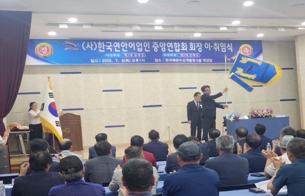 (경북=NSP통신) 조인호 기자 = 한국 연안어업인 중앙연합회는 지난 8일 부산광역시 부산한국해양수산개발원 6층 대강당에서 제1대 김대성 회장제2대 김해성 회장에 대한 취임식을 개최했다.