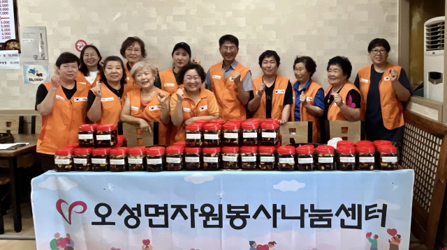 이날 봉사에는 자원봉사 나눔센터 회원 및 관내 자원봉사자 15여 명이 참여해 정성껏 담근 오이양파장아찌 50통을 오성면 홀몸노인, 장애인 및 다문화가정 등 도움이 필요한 이웃에 전달했다.