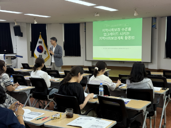 이번 교육은 채현탁 교수(대구사이버대학교 사회복지학과장)가 강사로 나서 ‘지역사회보장 수준을 업그레이드 시키는 지역사회보장계획 활용법’이라는 주제로 강의를 진행했다.