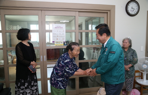 권기창 안동시장은 남선면 신석리마을회관을 방문해 어르신들의 건강 상태를 살피고 목걸이형 선풍기를 직접 전달하며 여름철 안전관리에 힘을 보탰다.
