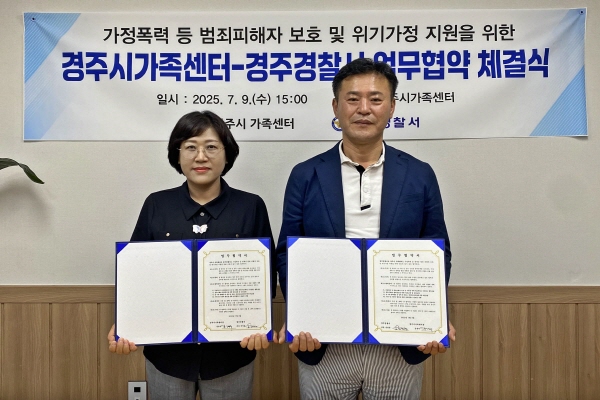 (경북=NSP통신) 조인호 기자 = 경주시가족센터와 경주경찰서가 가정폭력 등 관계성 범죄 피해자 보호와 위기가정 지원을 위한 협력체계를 구축했다.
