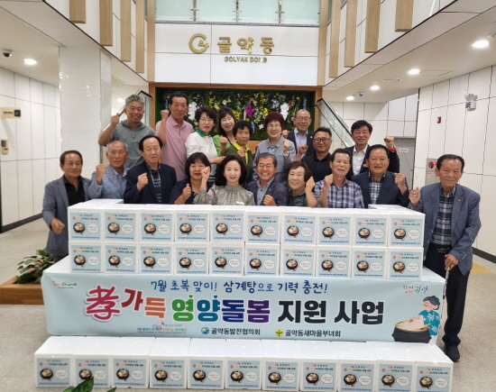 이번 ‘골약동 孝지킴이단’ 활동에는 골약동 발전협의회(회장 강삼수)와 새마을부녀회(회장 문혜경)가 참여했다. 이들은 초복을 맞아 한방삼계탕, 김치, 깻잎장아찌로 구성된 영양보양식 꾸러미를 준비해 배려 계층 어르신 35가구를 직접 방문·전달했다. 아울러 폭염 피해 예방을 위한 국민행동요령을 안내하고 건강 상태도 함께 확인했다.