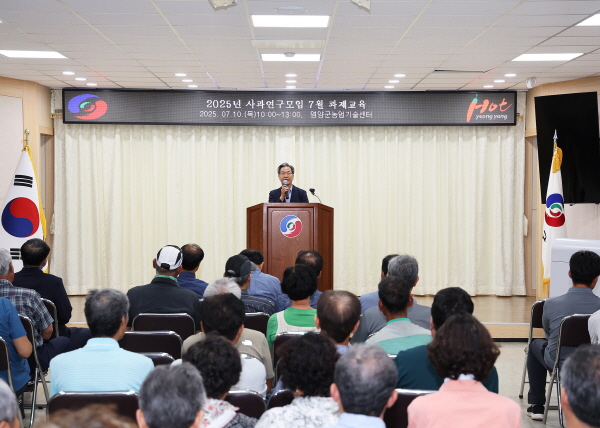 (경북=NSP통신) 조인호 기자 = 영양군은 지난 10일 영양군농업기술센터 대회의실에서 사과연구모임 회원 60여 명을 대상으로 ‘2025년 7월 과제교육’을 개최했다.