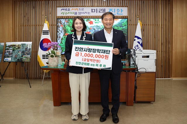 (전북=NSP통신) 김광석 기자 = 전북 진안군의회 이루라 의원이 11일 진안사랑장학재단(이사장 전춘성)에 장학금 100만원을 기탁했다.