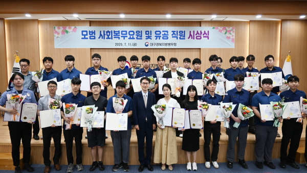 (경북=NSP통신) 김대원 기자 = 대구경북지방병무청(청장 오경준)은 11일 청사 대강당에서 모범 사회복무요원과 복무관리 유공 직원에게 표창장을 수여했다.