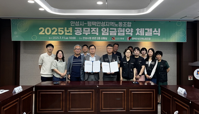 (경기=NSP통신) 김병관 기자 = 경기 안성시(시장 김보라)는 안성시청에서 공무직 노조인 평택안성지역노동조합(위원장 김기홍)과 ‘2025년 공무직 임금협약 체결식’을 가졌다.