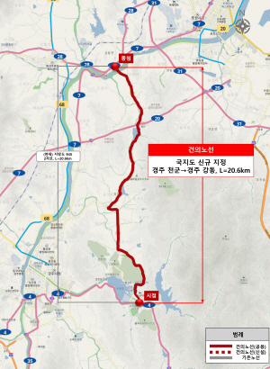 (경북=NSP통신) 조인호 기자 = 경주시는 강동에서 천북, 보문동을 잇는 지방도 945호선 20.6km 구간이 국가지원지방도(이하 국지도) 19호선으로 승격됐다고 14일 밝혔다.