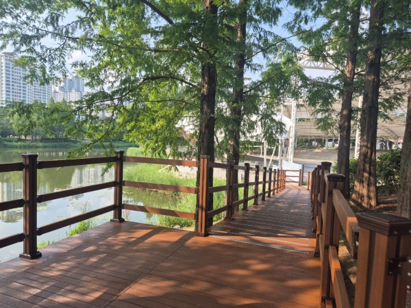 (경기=NSP통신) 김병관 기자 = 경기 용인특례시(시장 이상일)는 시민들이 안전하고 쾌적하게 산책할 수 있도록 동백호수공원에 데크길을 새로 조성했다.