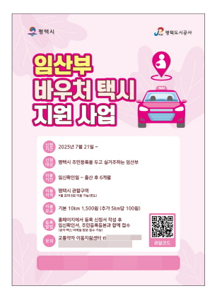 (경기=NSP통신) 김병관 기자 = 경기 평택시(시장 정장선)는 오는 21일부터 ‘임산부 대상 바우처 택시’ 운행을 시작한다.