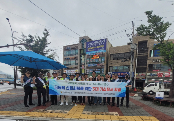 이날 캠페인은 무너진 공동체 질서를 바로잡고 시민 스스로 기초질서를 실천하는 문화를 확산시키기 위해 마련됐다. 남문파출소를 비롯해 생활안전협의회, 남문·중앙자율방범대 등 약 25명이 참여해 유동 인구가 많은 장날을 활용한 집중 홍보 활동을 펼쳤다.