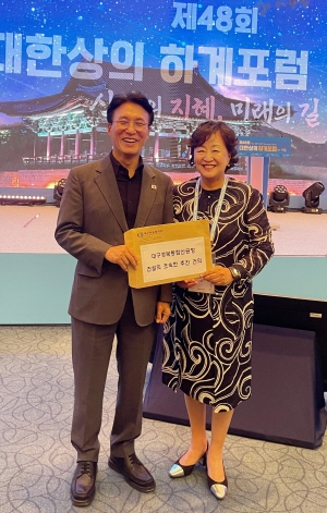 (경북=NSP통신) 김대원 기자 = 대구상공회의소(회장 박윤경)는 지난 16일 라한셀렉트 경주 호텔에서 개최된 대한상의 하계포럼에서 김민석 국무총리에게 대구경북의 숙원사업인 통합신공항 조속 건설에 대한 건의서를 직접 전달했다.