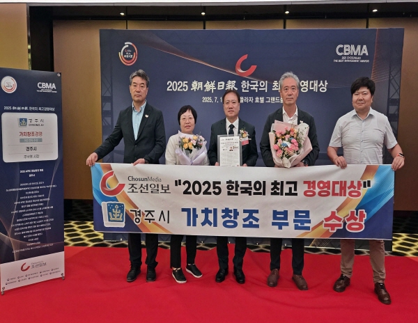 (경북=NSP통신) 조인호 기자 = 경주시가 지난 16일 서울 더플라자호텔 그랜드불륨에서 열린 ‘2025 한국의 최고경영대상’ 시상식에서 가치창조경영 부문 대상을 수상하며 3년 연속 본상 수상이라는 성과를 이어갔다.