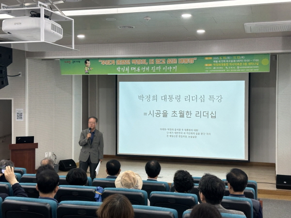 이번 강연은 ‘시공을 초월해 유효한 박정희 대통령 리더십’을 주제로 이대현(前 매일신문 편집국장) 논설위원이 강연자로 나섰다. 이 위원은 33년간의 언론인 경험을 바탕으로 박정희 대통령이 추구한 가치관과 국가 발전의 철학, 인간적 면모까지 심도 있게 조명했다.