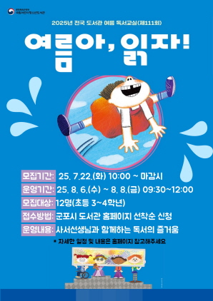 독서의 즐거움을 찾고 주도적인 독서습관 형성과 알찬 방학 생활을 지원하기 위한 문화프로그램으로 참가 신청은 오는 22일부터 31일까지 군포시도서관 홈페이지에서 선착순으로 마감된다.