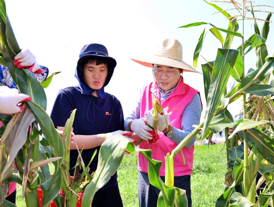 특히 수확한 옥수수는 봉사단이 직접 삶아 현장에서 학습자들에게 나눔으로 제공돼 체험의 즐거움에 따뜻한 감동을 더했다.