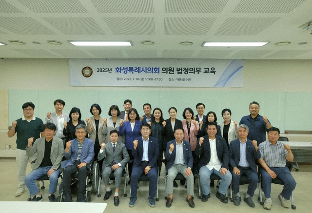 (경기=NSP통신) 조현철 기자 = 경기 화성시의회(의장 배정수)가 18일 시의원 25명 전원이 참석한 가운데 지방의회의 책무성 강화와 윤리의식 함양을 위한 법정의무교육을 실시했다.