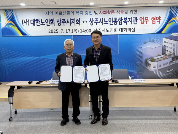 (경북=NSP통신) 김대원 기자 = 대한노인회 상주시지회(지회장 윤문하)와 상주시노인종합복지관(관장 김정규)은 지난 17일 지역 어르신들의 복지 증진과 삶의 질 향상을 위한 업무협약을 체결했다.