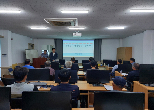 이번 교육은 금년도 신규 선정된 상수도 급수공사 대행업체 25개소의 대표자 및 현장대리인을 대상으로 진행됐으며 행사 기간 중 예상되는 급수 사고 및 이상 상황에 신속히 대응할 수 있도록 비상 대응체계 구축과 응급 복구 역량 강화를 목적으로 마련됐다.