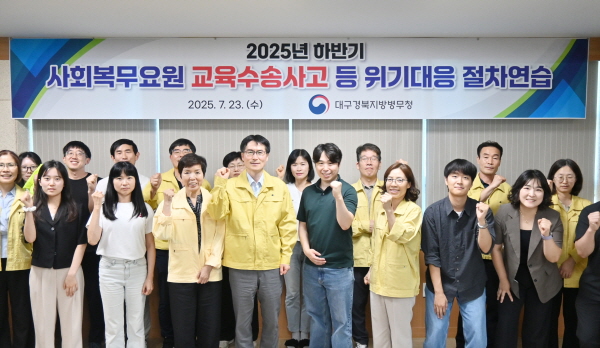 (경북=NSP통신) 김대원 기자 = 대구경북지방병무청(청장 오경준)은 23일 3층 중회의실에서 사회복무요원 교육생 및 예비군 수송 안전사고를 대비한 ‘위기대응 절차연습’을 실시했다.