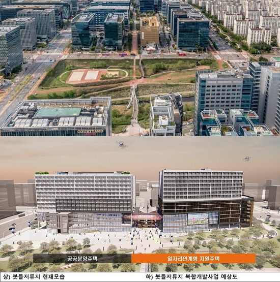성남시 판교 봇들저류지 복합개발사업 현재모습과 예상도. (사진 = 성남시)