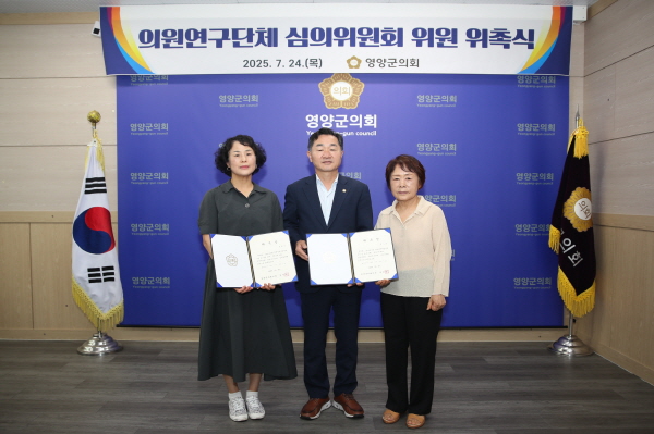 (경북=NSP통신) 조인호 기자 = 영양군의회(의장 김영범)는 24일 2025년도 영양군의회 의원연구단체 심의위원회 민간위원 2명을 새롭게 위촉하고 위촉장을 전달한 뒤 심의위원회 회의를 개최했다.