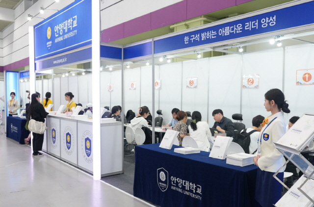 안양대는 전국 152개 대학이 참가한 한국대학교육협의회 주최 2026 수시 대학입학정보박람회에서 24일부터 26일까지 사흘간 입학처 전문 상담 직원과 홍보대사 등이 입학 전형 상담과 안내를 진행하고 있다.