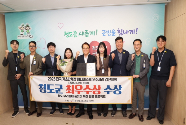 (경북=NSP통신) 김대원 기자 = 청도군(군수 김하수)은 지난 23일부터 24일까지 한국매니페스토와 경북연구원 공동 주최로 경북 안동시에서 시행된 ‘2025 전국기초단체장 매니페스토 우수사례 경진대회’에 참가해 공동체 강화 분야에서 ‘최우수상’을 수상했으며 지난해에 이어 2년 연속 최우수라는 쾌거를 이뤘다.