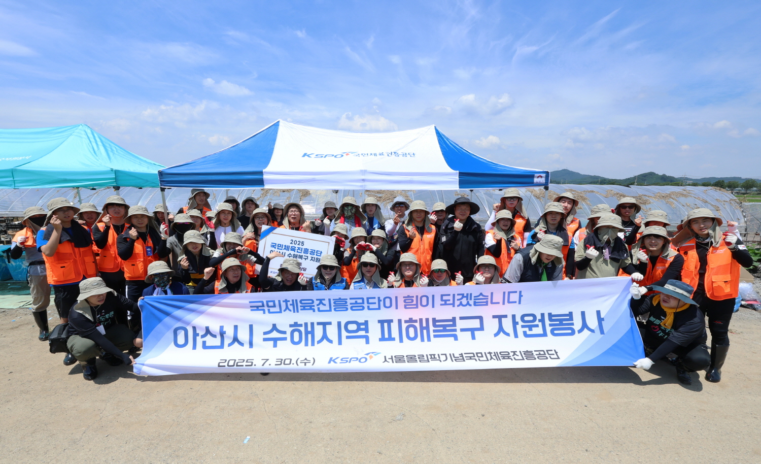 (경기=NSP통신) 김종식 기자 = 서울올림픽기념국민체육진흥공단(이사장 하형주, 체육 공단)은 기록적인 폭우로 수해 피해가 발생한 충남 아산시를 찾아 봉사활동을 펼쳤다.