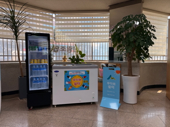 이번에 조성된 무더위쉼터는 냉방기기와 정수기, 편안한 의자 등 기본적인 시설과 무더위를 식힐 수 있도록 시원한 생수와 음료, 아이스크림도 비치되어 있어 이용자들로부터 큰 호응을 얻고 있다.