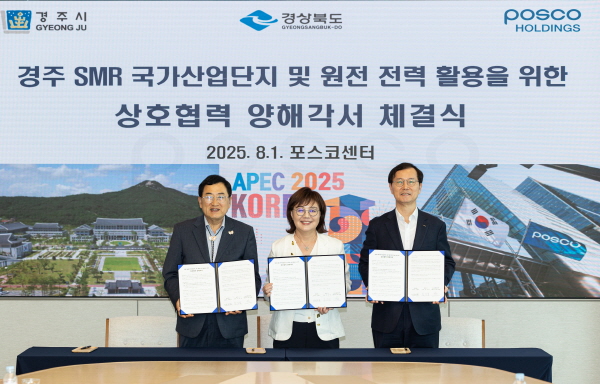 (경북=NSP통신) 조인호 기자 = 경상북도는 1일 서울 포스코센터 회의실에서 경주시, 포스코홀딩스(005490)와 소형모듈원전(SMR) 1호기 경주 유치와 월성원전 등 원전 전력의 활용 협력을 위한 업무협약을 체결했다.