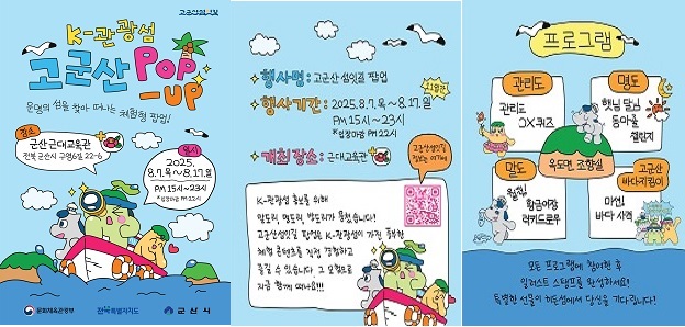 김문숙 관광진흥과장은 “이번 팝업을 통해 고군산섬잇길 브랜드와 매력을 재밌는 체험을 통해 알리고, K-관광섬에 대한 관심과 방문을 늘리는 계기가 되길 바란다”며 “앞으로도 다양한 체험과 프로그램으로 K-관광섬을 널리 알릴 수 있도록 노력하겠다”고 말했다.