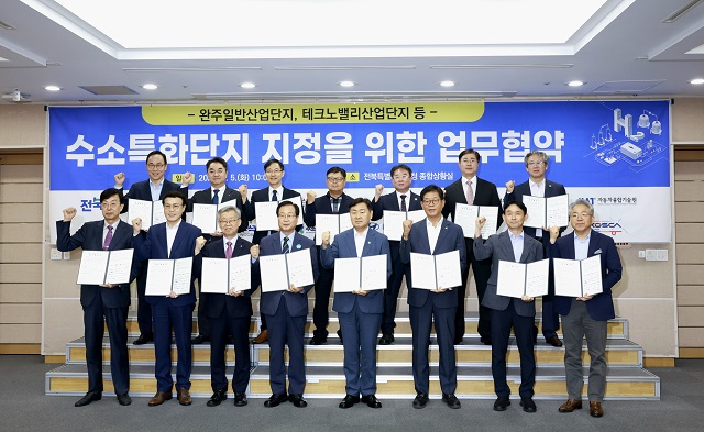 이날 협약식에는 전북도지사와 완주군수를 비롯해, (사)한국수소연합, 한국가스안전공사, 전북연구원, 전북테크노파크, 경제통상진흥원, 자동차융합기술원, 전북대학교, 국립군산대학교, 우석대학교, 수소에너지고등학교, 현대자동차 전주공장, 일진하이솔루스, 비나텍, 코스텍 등 총 16개의 기관 및 기업이 참여했다.