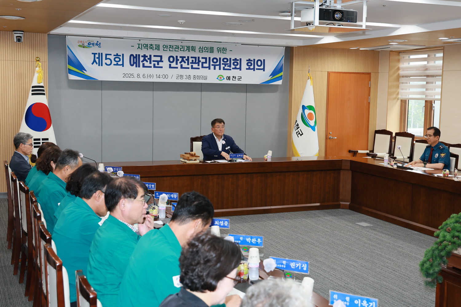 (경북=NSP통신) 김오현 기자 = 예천군(군수 김학동)은 6일 군청 3층 중회의실에서 ‘제5회 예천군 안전관리위원회’를 열고 8월 개최될 예정인 예천곤충페스티벌과 경북도청신도시 버블런의 안전관리계획을 심의했다.