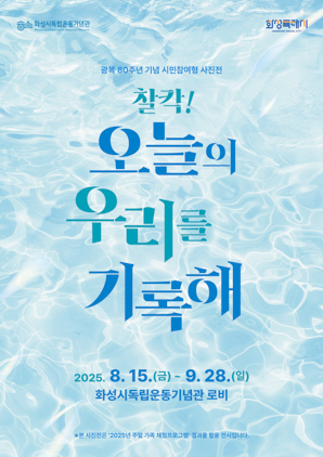 (경기=NSP통신) 조현철 기자 = 경기 화성시(시장 정명근)가 오는 15일부터 9월 28일까지 화성시독립운동기념관 로비에서 광복 80주년 기념 시민 참여형 사진전 ‘찰칵! 우리의 오늘을 기록해’를 개최한다.