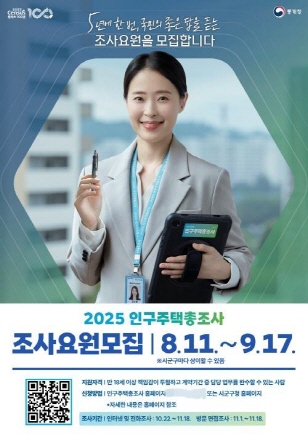 5년 만에 실시되는 인구주택총조사 성공적 추진 위한 인력 모집