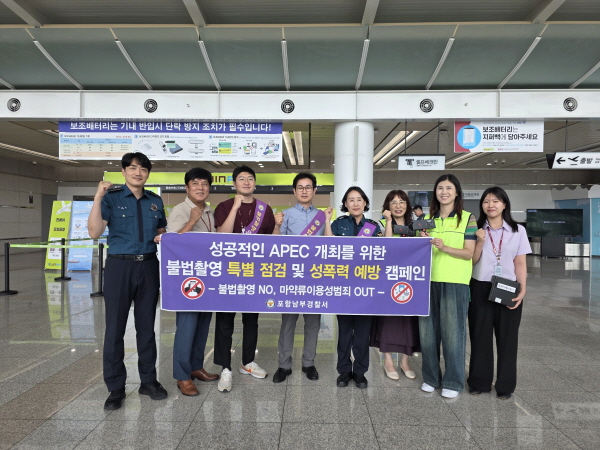 (경북=NSP통신) 조석현 기자 = 포항남부경찰서(서장 박찬영)는 지난 8일 2025년 APEC 정상회의의 성공적인 개최를 앞두고, 포항경주공항에서 불법 촬영기기 특별 점검 및 성범죄 예방 캠페인을 실시했다.