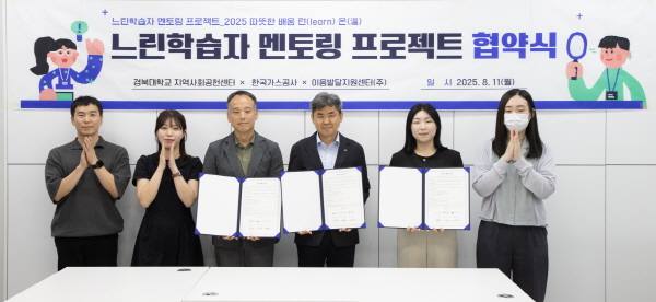 (경북=NSP통신) 김대원 기자 = 한국가스공사(036460)는 지난 11일 경북대학교 지역사회공헌센터 및 이음발달지원센터와 대구 지역 경계선 지능 아동·청소년의 사회 적응을 지원하기 위해 ‘느린학습자 멘토링 사업 업무협약’을 체결했다.