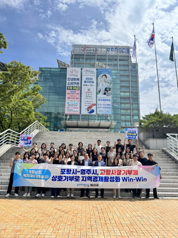(경북=NSP통신) 조인호 기자 = 포항시는 편준 복지국장과 직원 총 30명이 영주시 문화복지국 30명과 고향사랑기부금을 상호 기부하고 양 지자체 간 지역경제 활성화와 기부 문화 확산에 나섰다고 13일 밝혔다.
