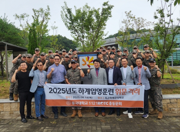 (경북=NSP통신) 조인호 기자 = 동국대 WISE캠퍼스(총장 류완하)가 14일 충청북도 괴산군에 위치한 육군학생군사학교를 방문해 하계 입영훈련 중인 학군사관후보생들을 격려했다고 밝혔다.
