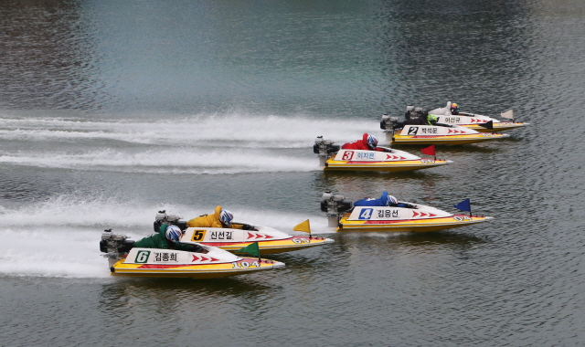 미사경정장에서 선수들이 턴마크를 돌며 경합을 벌이고 있다. (사진 = 국민체육진흥공단)