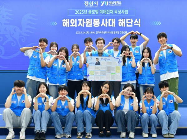 (경북=NSP통신) 김대원 기자 = 경산시(시장 조현일)는 지난 14일 천마아트센터 이시원 글로벌 컨벤션홀에서 ‘2025년 글로벌 미래인재 육성사업’에 참여한 대학생 해외자원봉사대 18명과 영남대 사회공헌단 관계자 등이 참석한 가운데 성과공유 및 해단식을 개최했다.