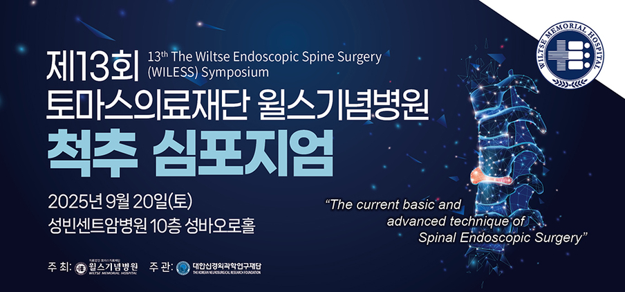 9월 20일 성빈센트암병원 10층 성바오로홀에서 열리는 ‘제13회 토마스의료재단 윌스기념병원 척추 심포지엄’은 척추 내시경 수술 분야의 다양한 임상 경험과 술기를 공유하고 척추 수술의 미래를 조망하고 토론한다.