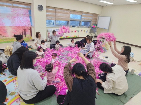 순천시 육아종합지원센터에서 오감 퍼포먼스 활동을 통해 양육부담을 해소하고 있다 (사진 = 순천시)