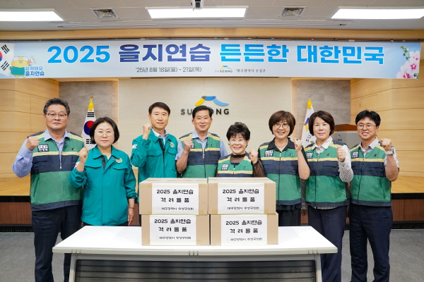 (경북=NSP통신) 김대원 기자 = 대구 수성구의회는 지난 18일 수성구청 대강당에 마련된 2025 을지연습 종합상황실을 방문해 훈련에 참여중인 공직자와 관계자들을 격려하고 간식을 전달했다.
