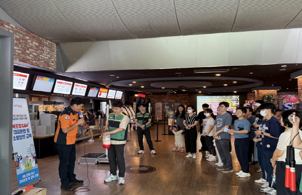 다중이용시설 훈련은 평소 이용객이 많은 북포항 CGV에서 관람객과 종사자가 함께 참여해 실제 상황을 체험했으며 북부소방서가 진행한 소방안전교육으로 소화기 사용법과 국민행동요령도 익혔다.