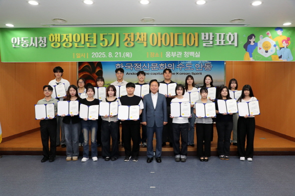 (경북=NSP통신) 김오현 기자 = 안동시(시장 권기창)는 21일 시청 청백실에서 행정인턴 정책아이디어 발표회를 열고 두 달간 시정 현장에서 활동한 청년 인턴들의 경험과 정책 제안을 공유하는 자리를 마련했다.