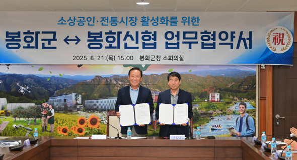 (경북=NSP통신) 김오현 기자 = 봉화군과 봉화신용협동조합(봉화신협)은 지난 21일 봉화군청 소회의실에서 ‘소상공인 및 전통시장 활성화’ 업무협약을 체결했다.