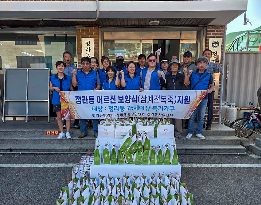 정라동번영회는 “무더위 속 어르신들이 원기를 회복하고 건강하게 여름을 나시길 바라는 마음으로 준비했다”며 “앞으로도 나눔 활동을 이어가겠다”고 밝혔다.