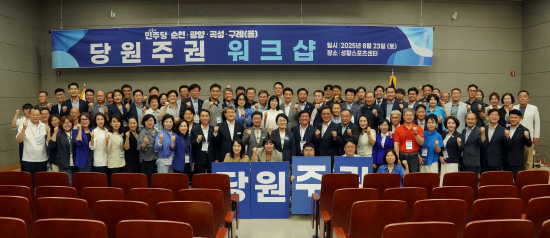 (전남=NSP통신) 김성철 기자 = 더불어민주당 순천·광양·곡성·구례(을) 지역위원회(지역위원장 권향엽 국회의원)는 지난 23일 성황스포츠센터에서 ‘당원주권 워크숍’을 개최했다.